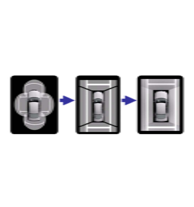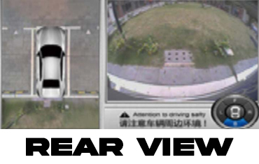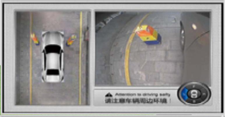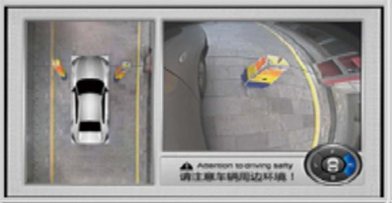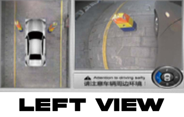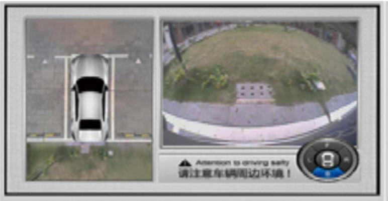 The view of four directions around the car can be switched with touching the related button on touch panel.